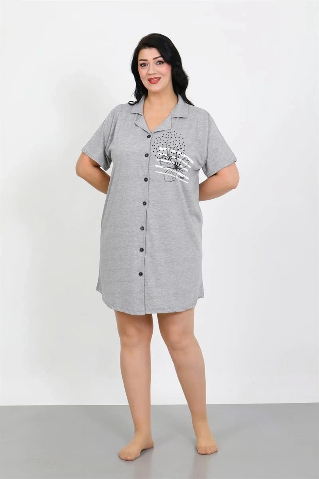 Çamaşır Kenti'nin Büyük Beden Penye Düğmeli Gri Tunik Geceliği ile her gece kendinizi özel hissedin!% 100 Cotton