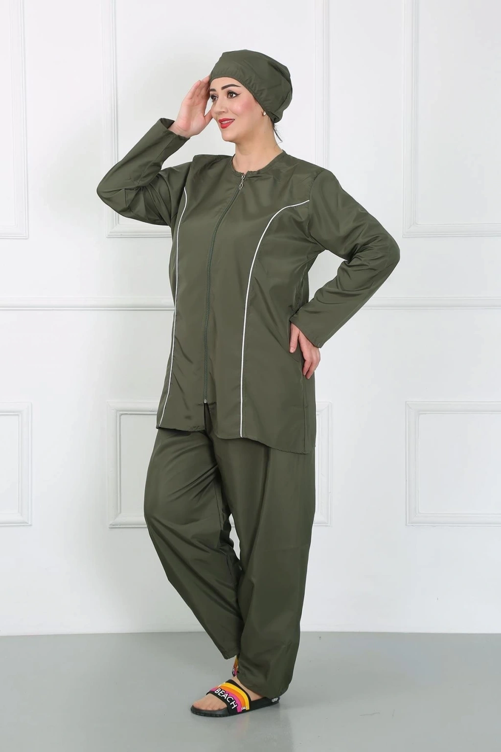 Büyük Beden Tesettür Büyük Mayo Haki, şıklık ve rahatlığı bir arada sunar. Çamaşır Kenti'nin özel tasarımı olan bu mayo, plajda tarzını konuşturmak isteyenler için ideal bir seçenektir.