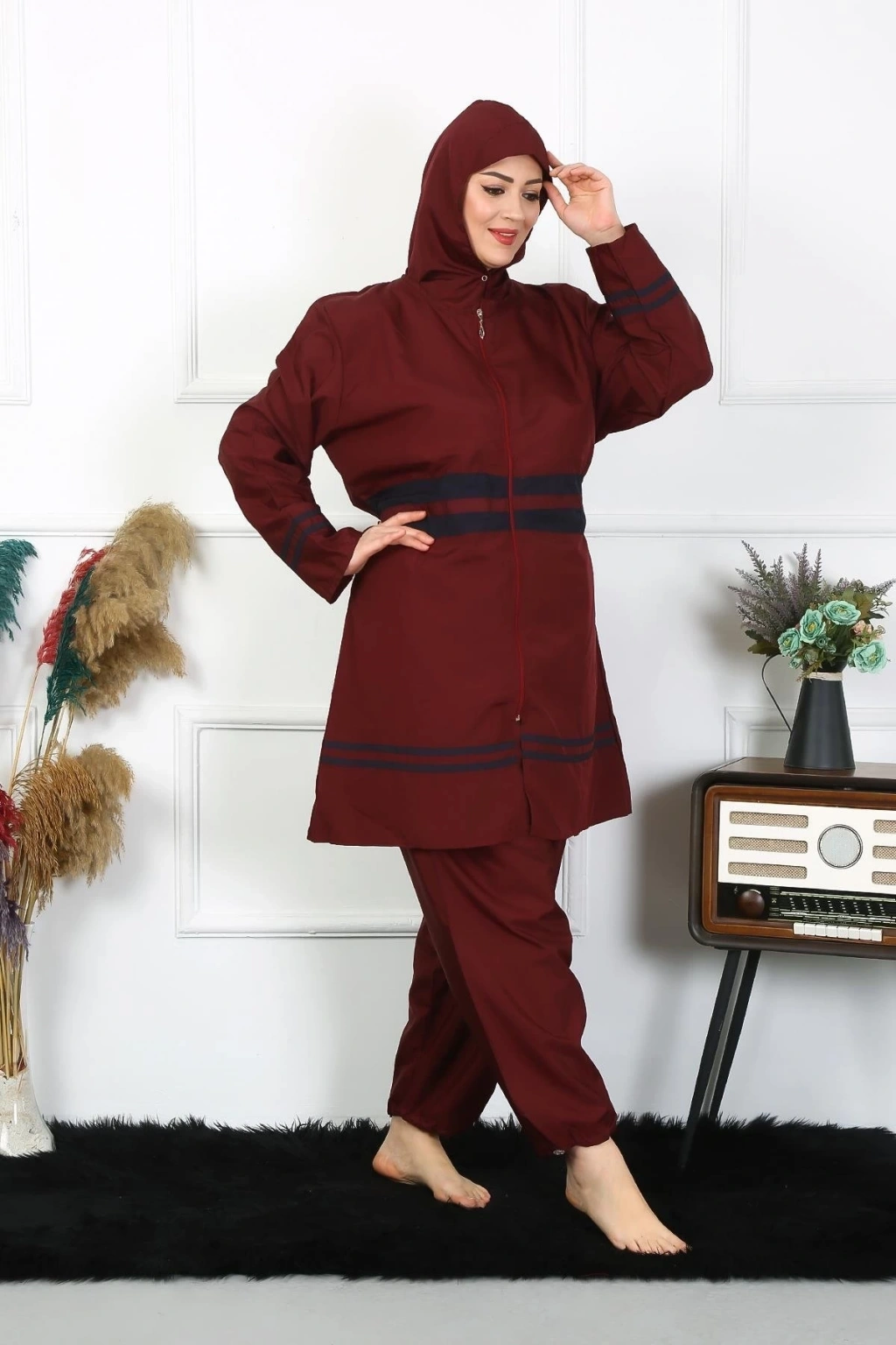 Çamaşır Kenti'nin özel tasarımı olan Büyük Beden Tesettür Mayo 7XL-8XL-9XL-10XL Bordo, plajda hem şıklığından ödün vermeyenler hem de konfor arayanlar için ideal bir seçimdir.