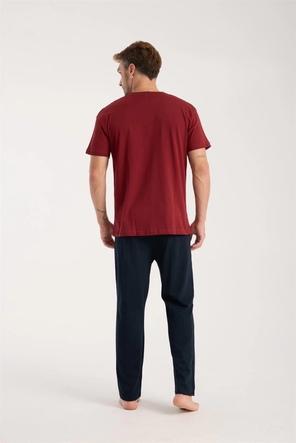 Çamaşır Kenti Erkek Bordo Düğmeli Yaka Kısa Kol Pijama Takımı ile rahatlığı ve şıklığı bir arada yaşayın.