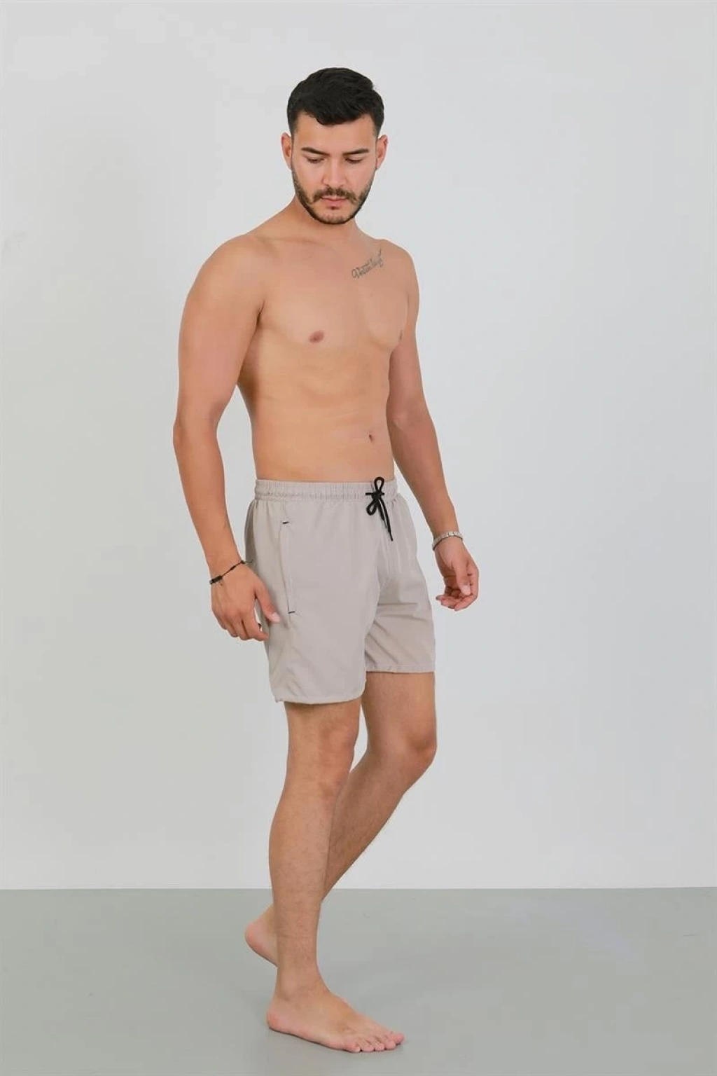 Erkek fermuarlı cepli deniz şortu bej rengiyle hem şıklığı hem rahatlığı bir arada sunuyor. Siz de yazın keyfini doyasıya çıkarırken tarzınızdan ödün vermek istemeyenlerdenseniz bu şort tam size göre!