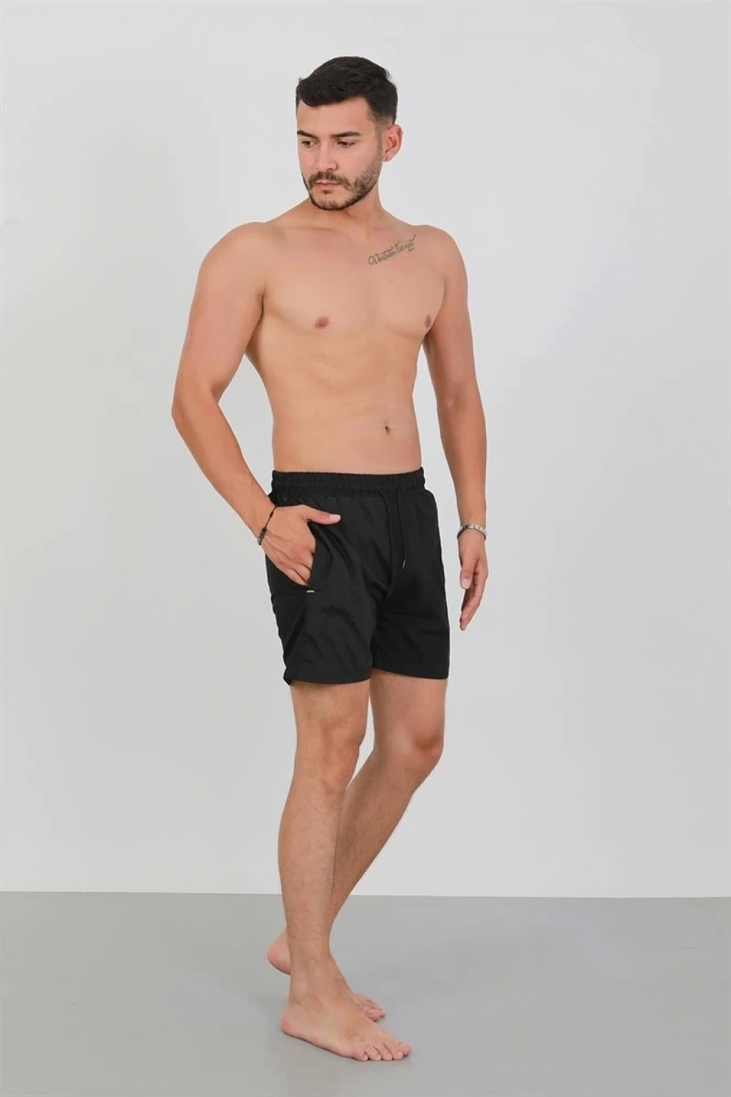 Bu şık siyah deniz şortu ile plajın ve havuzun tadını çıkarırken şıklığınızdan ödün vermeyeceksiniz. Çamaşır Kenti kalitesi ile yaz mevsimine stil katın!