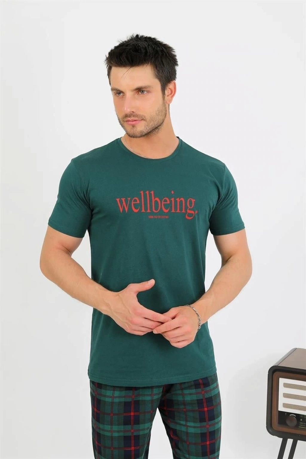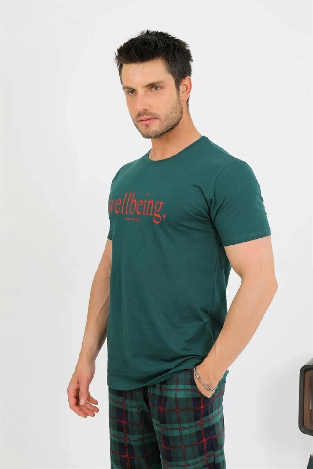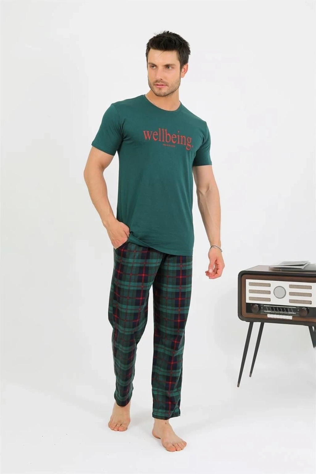 Çamaşır Kenti'nin şık ve konforlu erkek pamuk kısa kol pijama takımı Zümrüt , rahat bir gece uykusu için ideal seçimdir.