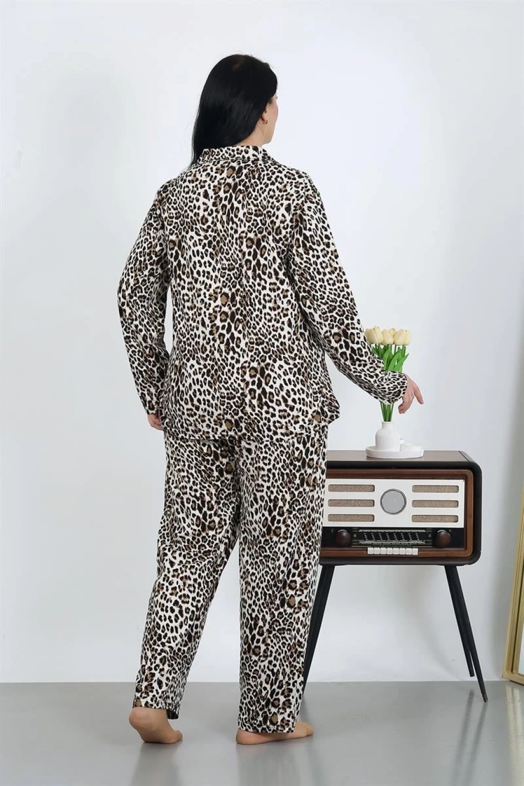 Çamaşır Kenti markasının özel tasarımı olan Kadın Büyük Beden Pamuklu Cepli Düğmeli Kahverengi Pijama Takımı, şıklığı ve konforu bir arada sunuyor.