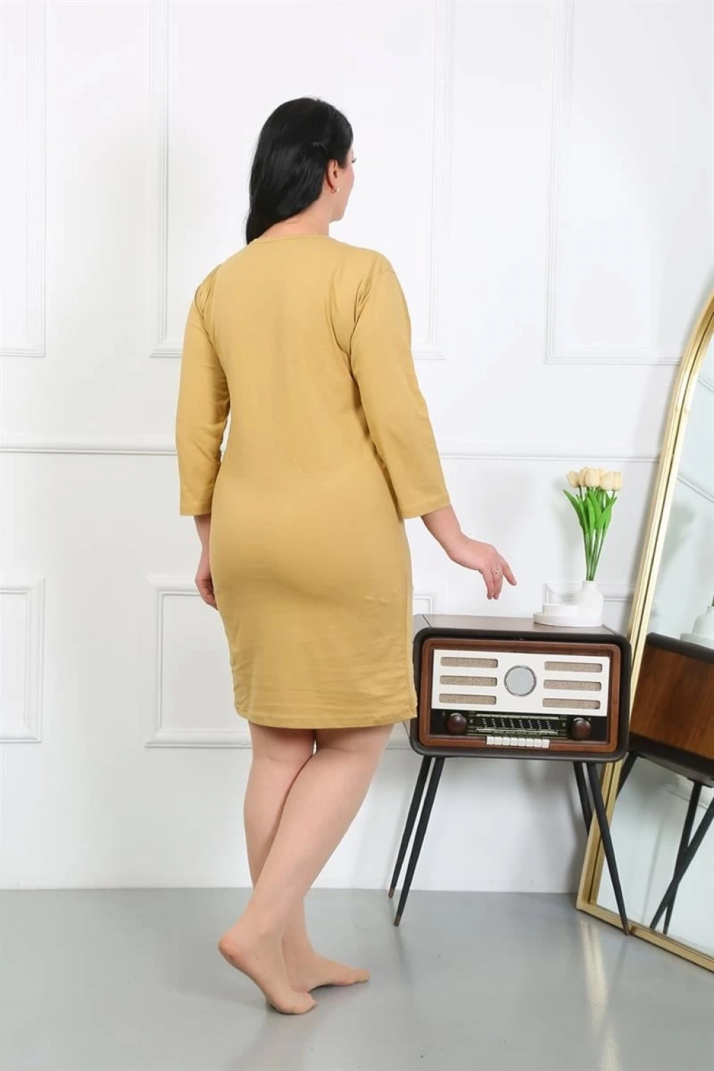 Bu şık ve konforlu geceliği tercih ederek evdeyken de şıklığınızı koruyabilirsiniz. Kendinizi özel hissetmek ve rahat etmek için hemen sepetinize ekleyin! % 100 Pamuk Kadın Büyük Beden Penye Gecelik Ev Elbisesi Mankenin üzerindeki beden 3XL bedendir.