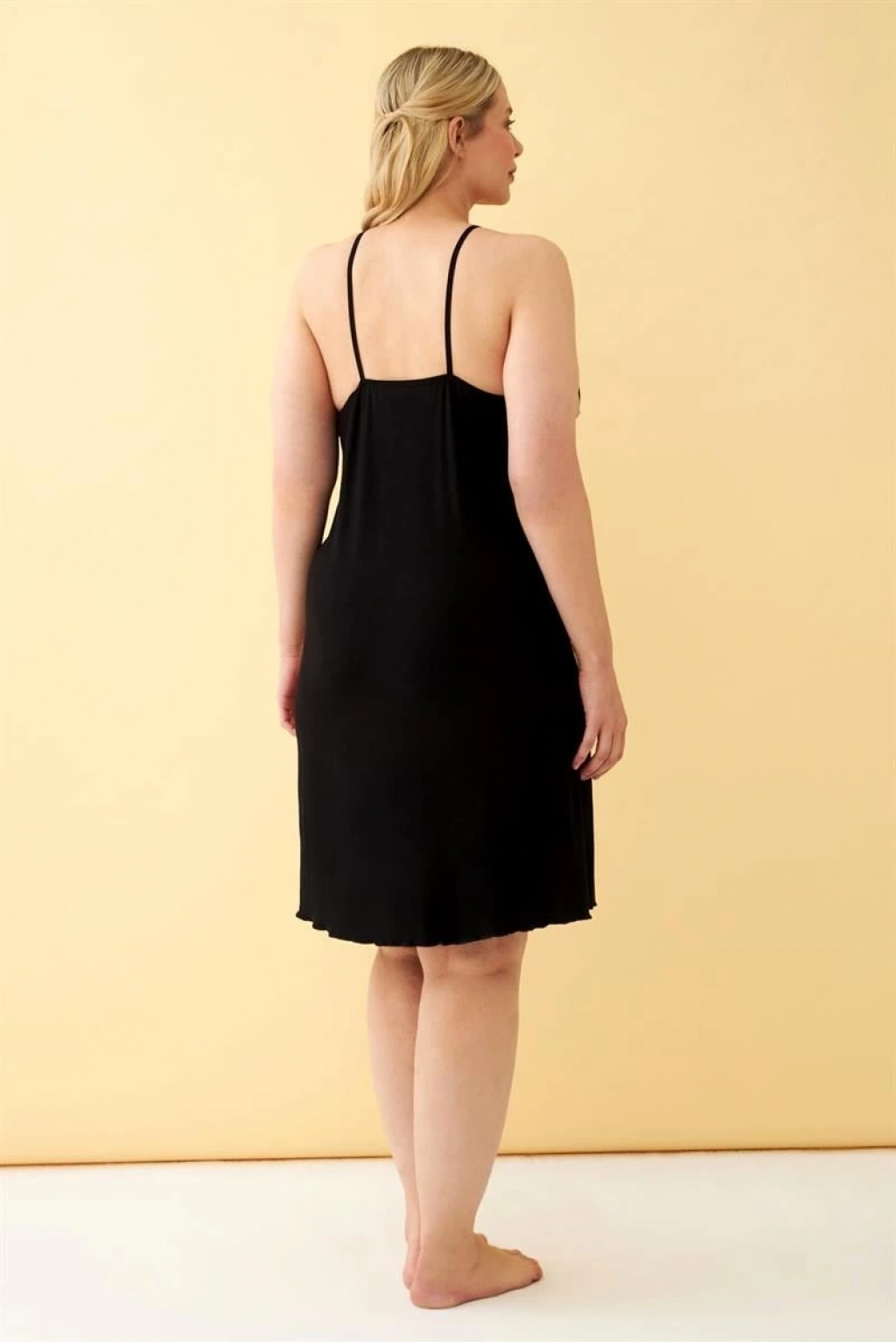 Kadın Büyük Beden Siyah Çiçek Desenli Askılı Gecelik Rahat ve konforlu tasarım Şık siyah çiçek deseni İnce askı detayları