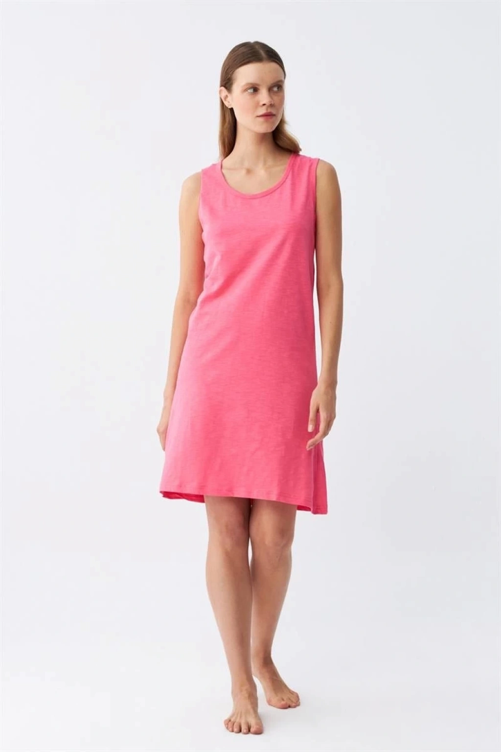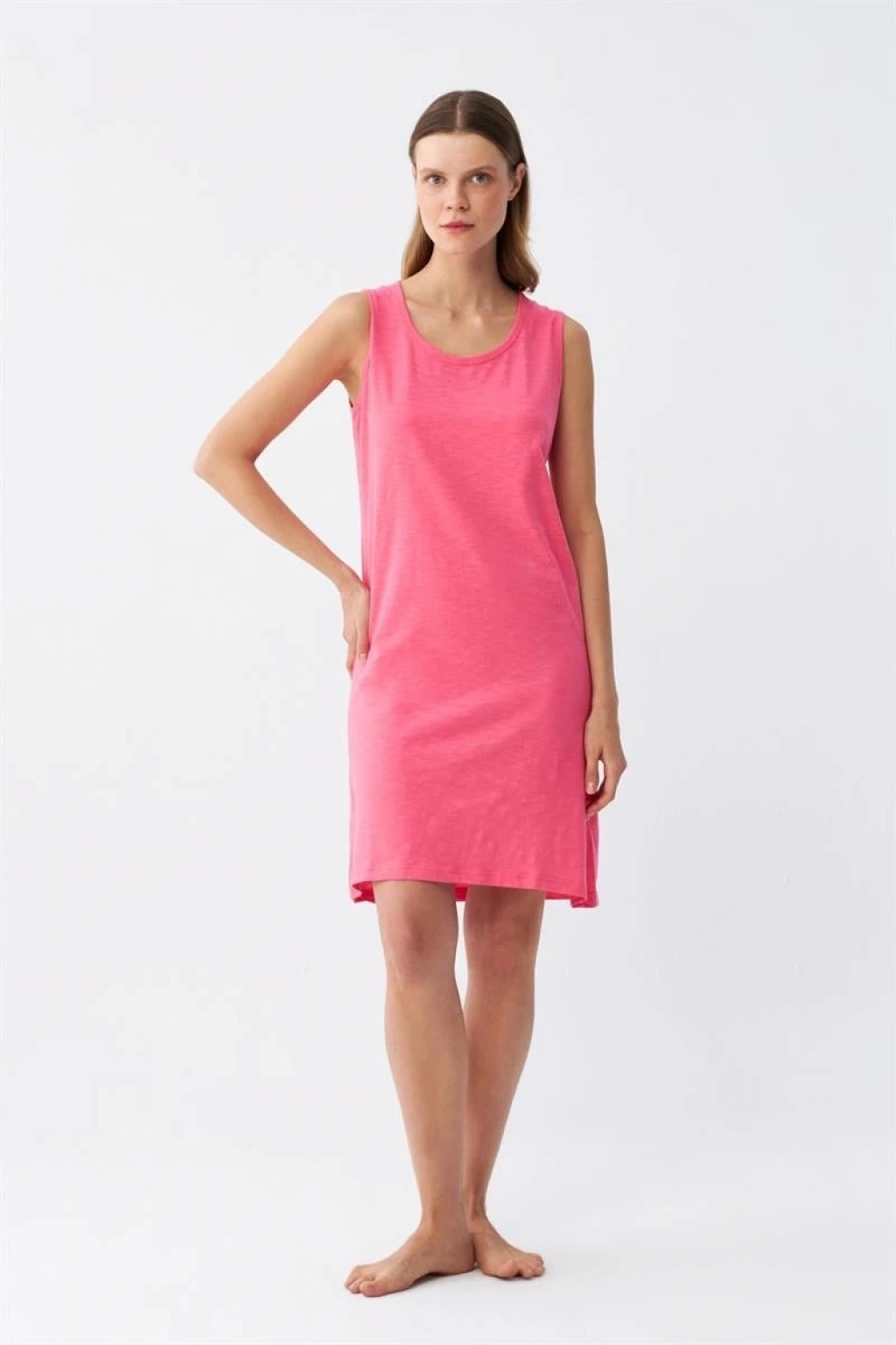 Çamaşır Kenti markasının şık ve rahat tasarımına sahip Kadın Kalın Askılı Penye Gecelik Fuşya, günün yorgunluğunu üzerinizden atmanızı sağlar. Özellikler: