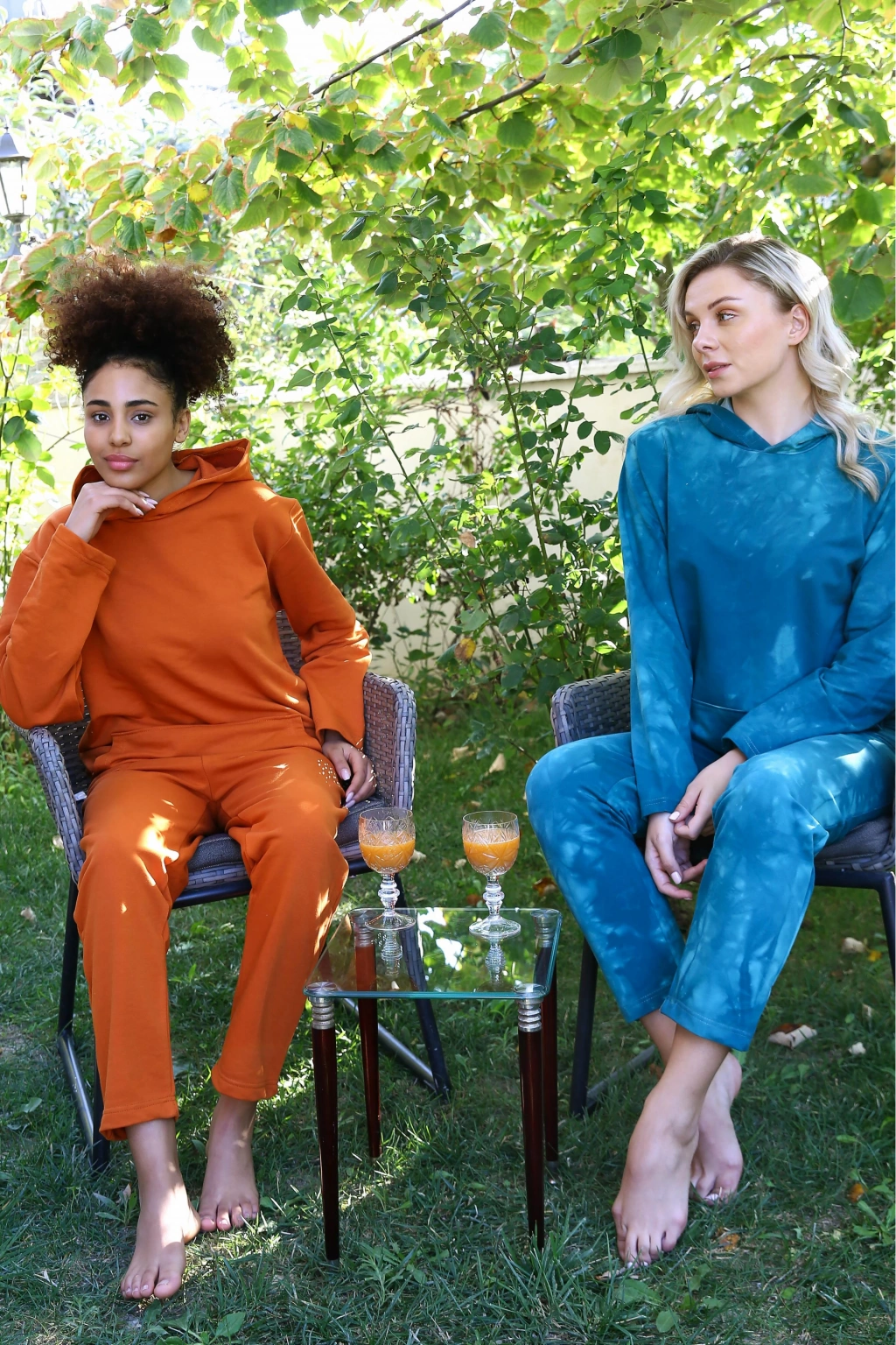 Çamaşır Kenti Kadın Pamuk Kapşonlu Cepli 3 İplik Kiremit Eşofman Takımı, spor salonundan günlük hayata kadar her ortamda şıklığınızı ve rahatlığınızı korumanızı sağlar.