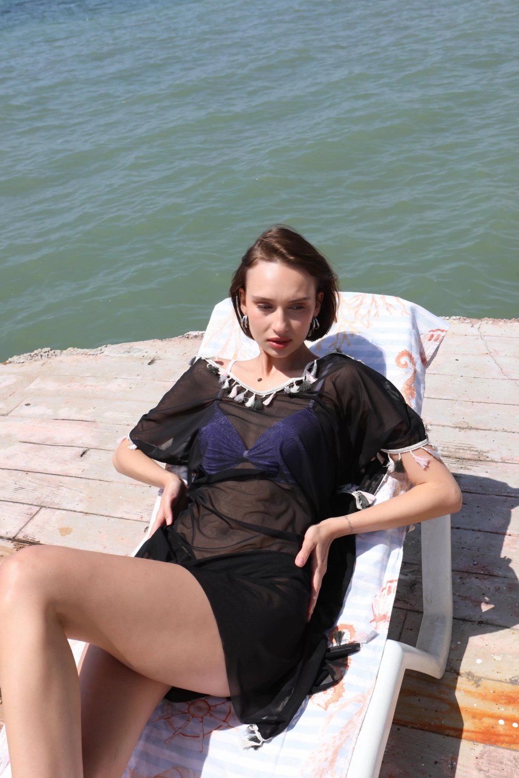 Şık Tasarım: Püskül detayları ve modern kesimiyle plajda veya havuz kenarında göz kamaştıracaksınız. Siyahın zarafeti ile plaj stilinizi tamamlayın.