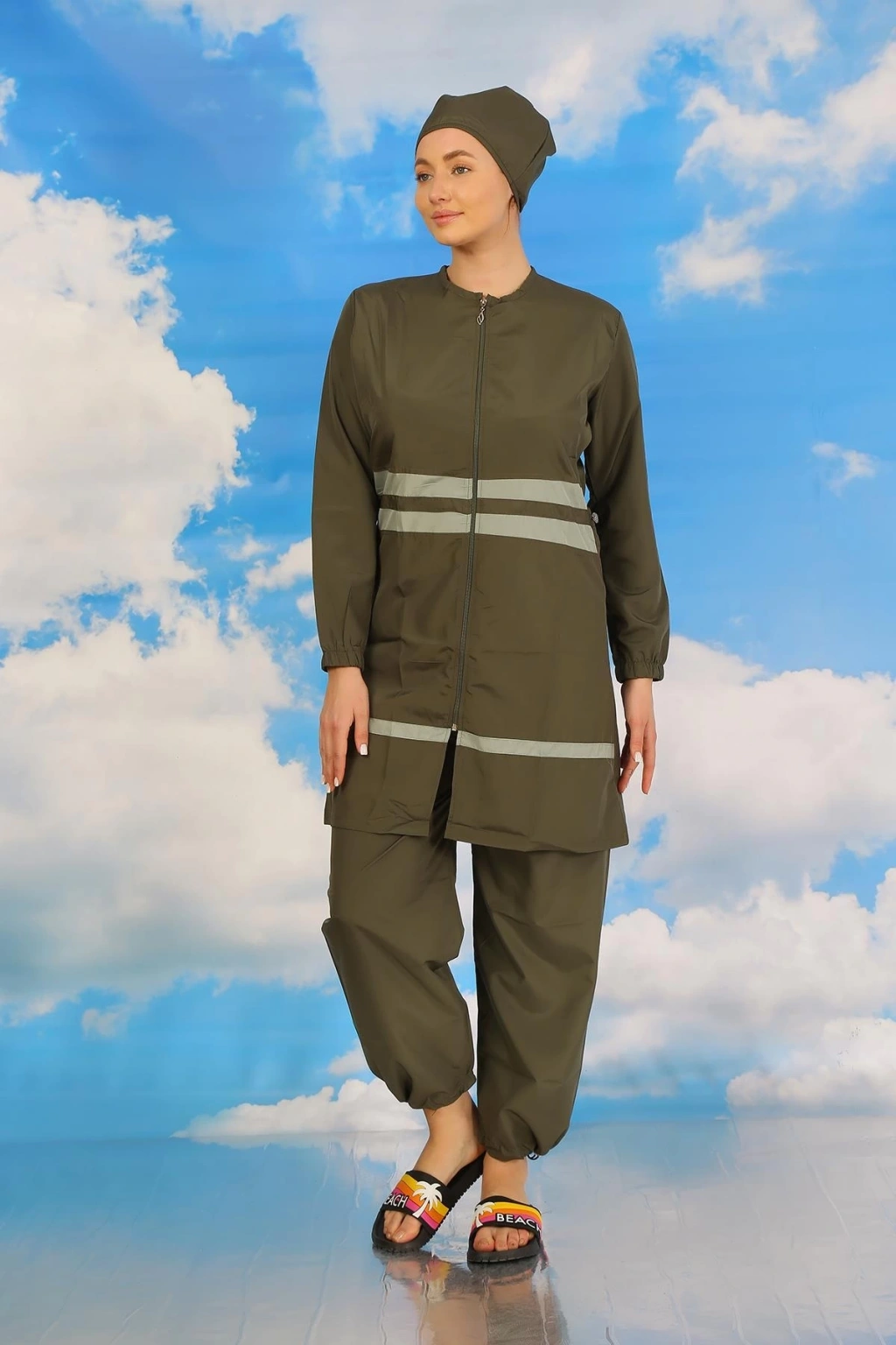 Çamaşır Kenti markasının özel tasarımı olan Kadın Tam Tesettür Mayo Haki ile plajda şıklık ve rahatlığı bir arada yaşayacaksınız.
