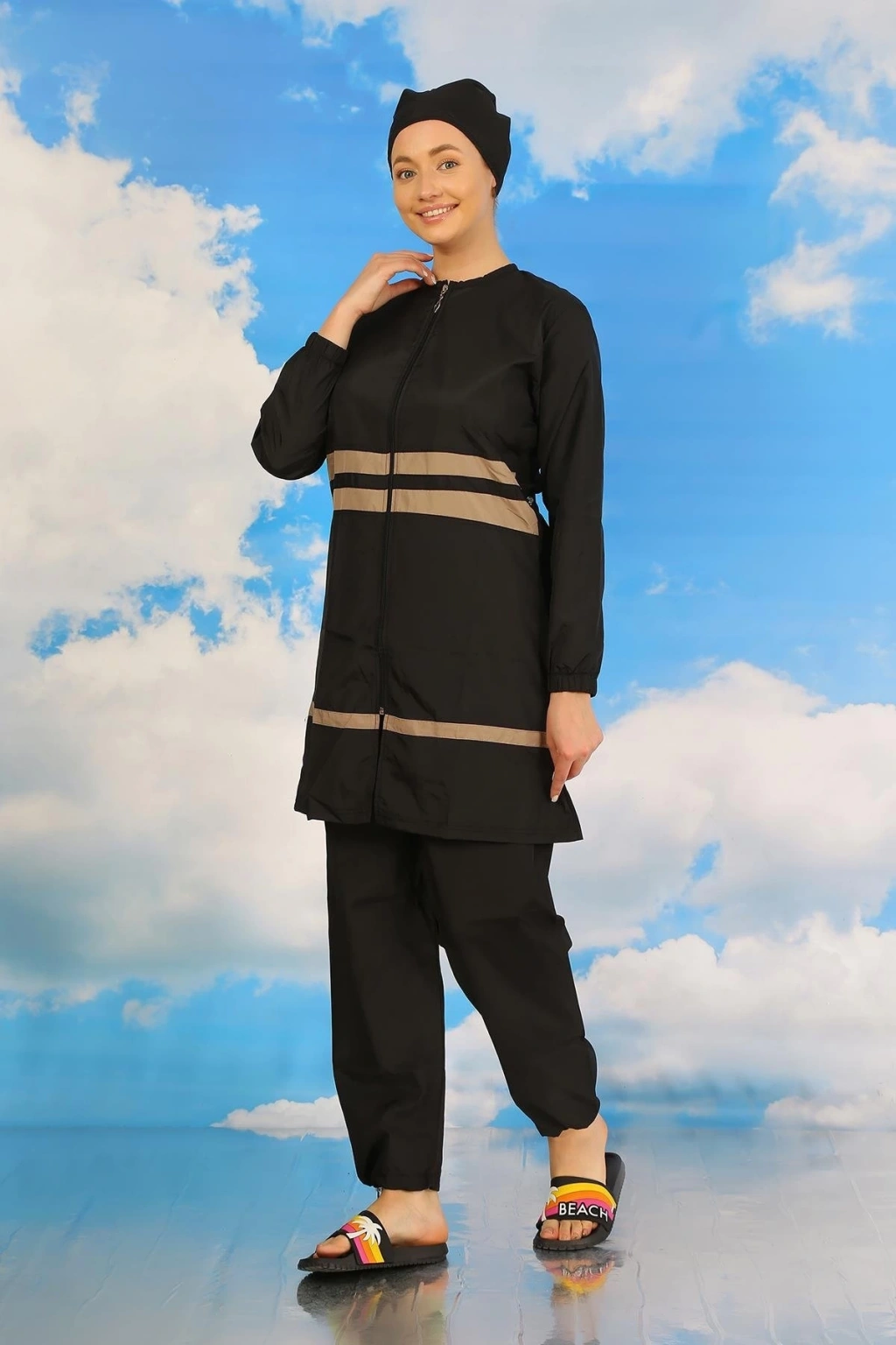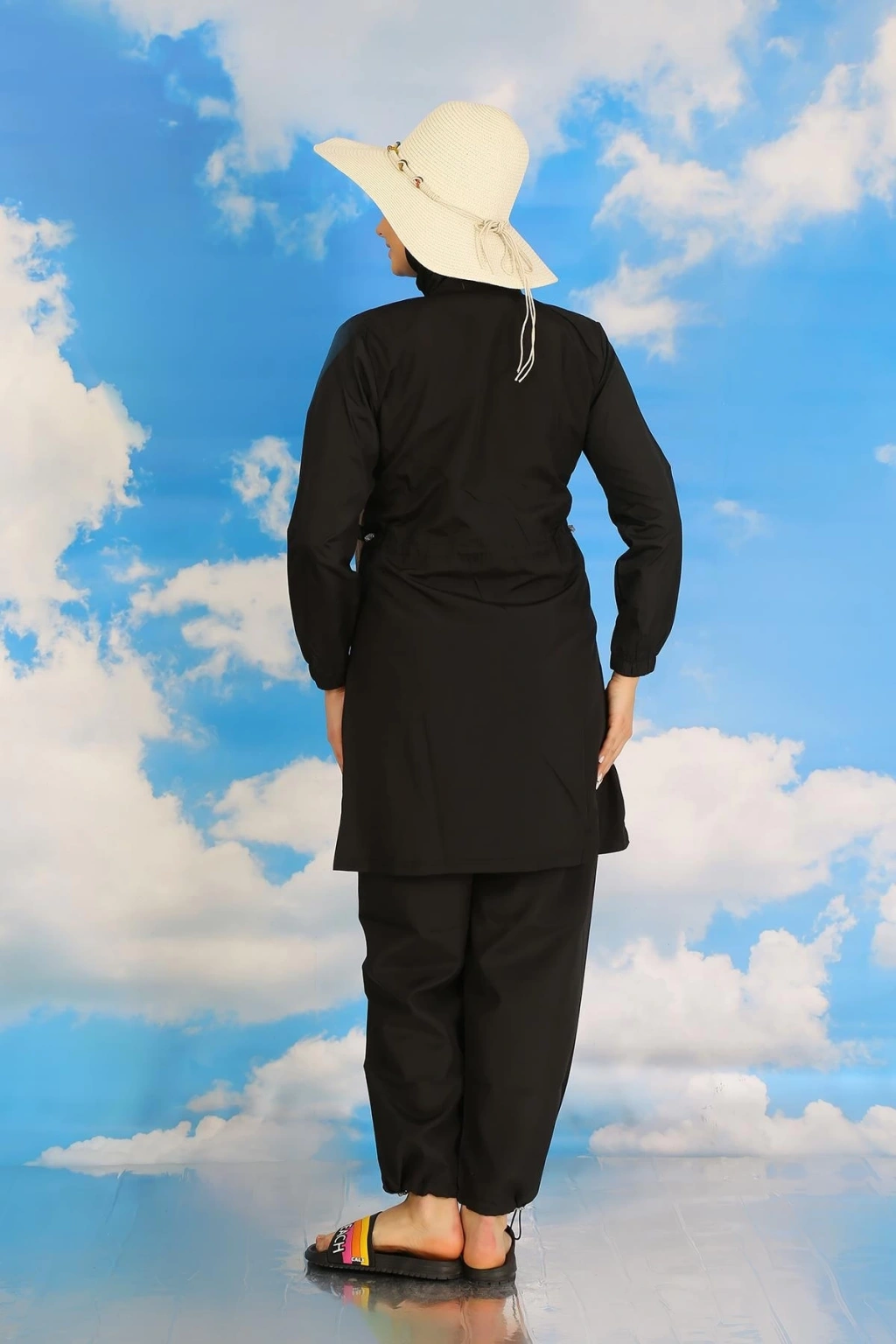 Çamaşır Kenti markasının kadınlar için özel olarak tasarladığı Tam Tesettür Mayo Siyah, plajda şıklığı ve rahatlığı bir arada arayanlar için ideal bir seçenektir.