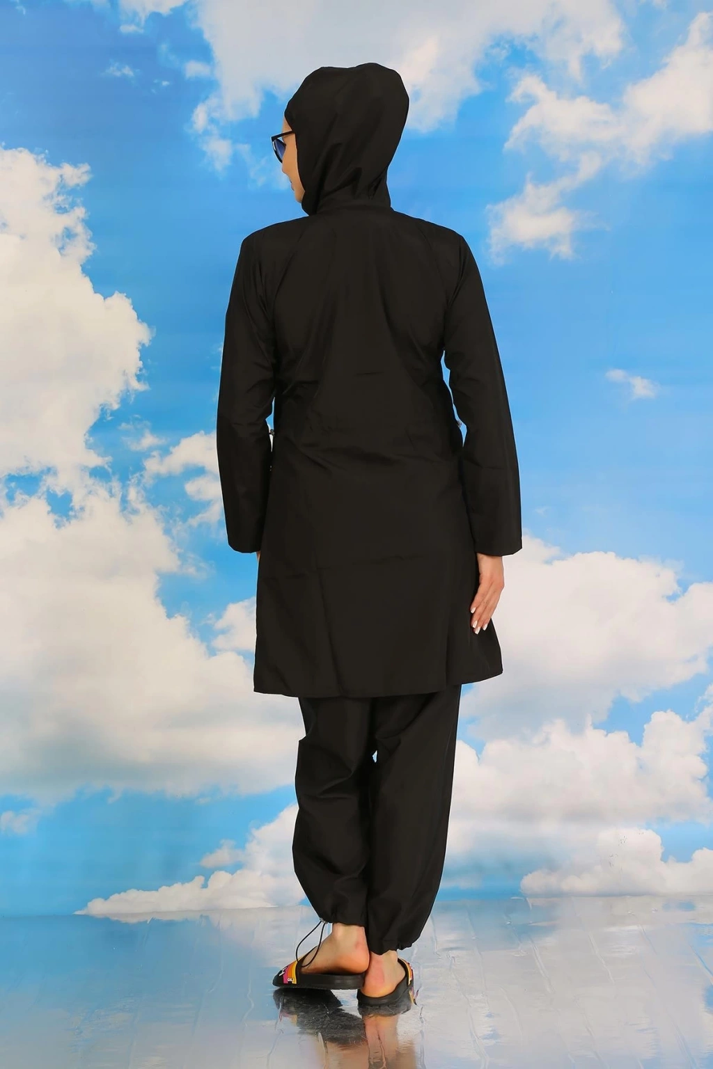 Çamaşır Kenti markasının kadınlar için özel olarak tasarladığı Tam Tesettür Siyah Mayo, plajda şıklığı ve rahatlığı bir arada arayanların tercihi olacak. Ürün, tesettüre uygun kesimiyle dikkat çekerken, siyah rengi ile de şıklığı ön plana çıkarıyor.