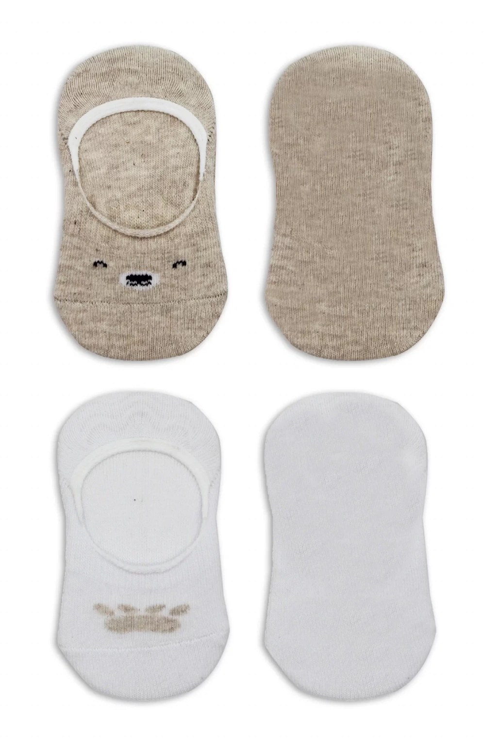 Lenaca Bistyle 2'li Babet Cute Face Penye Çorap 30103 Bej Beyaz