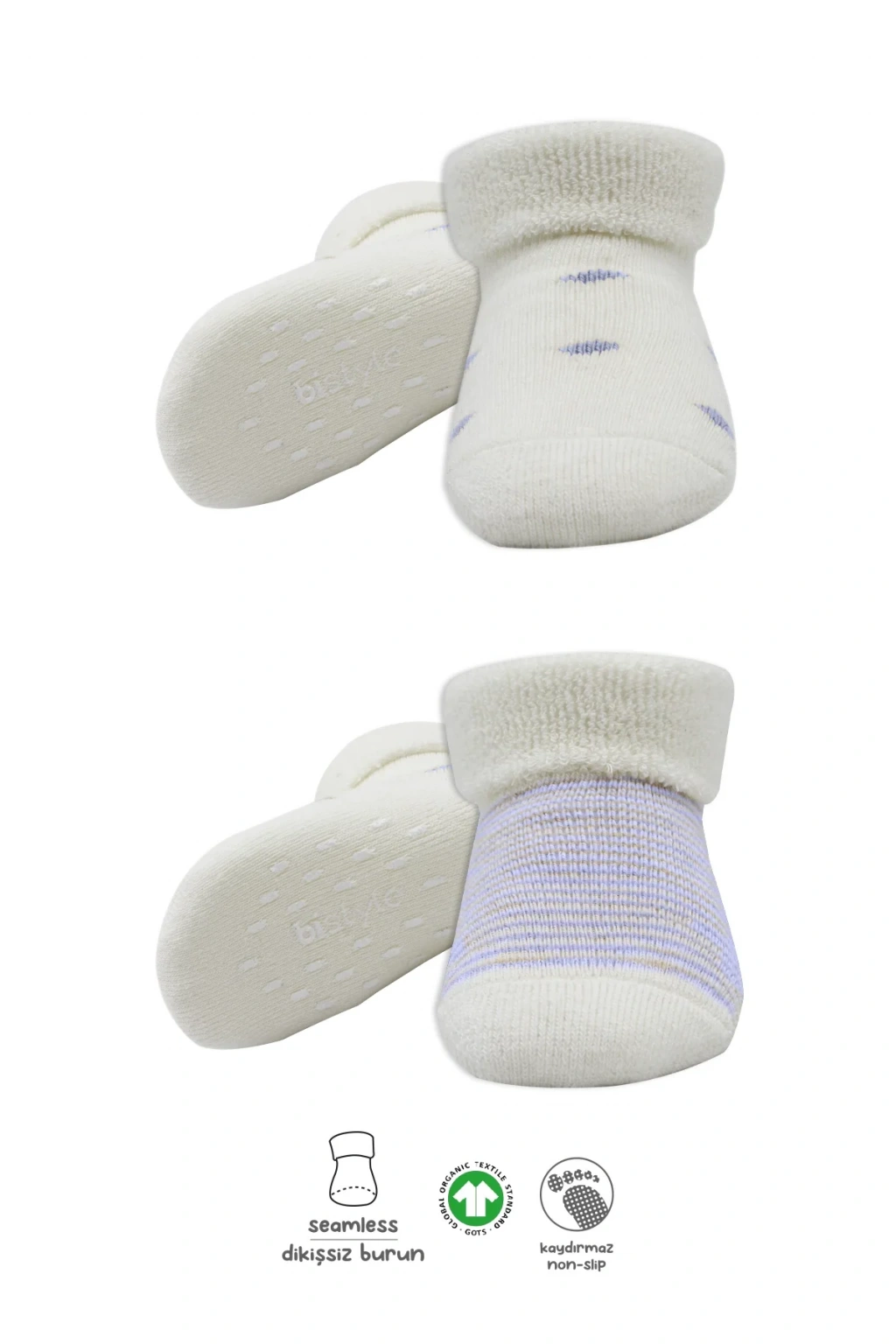 2'li Havlu Soket Kaymaz Çorap 10504 İndigo Ekru