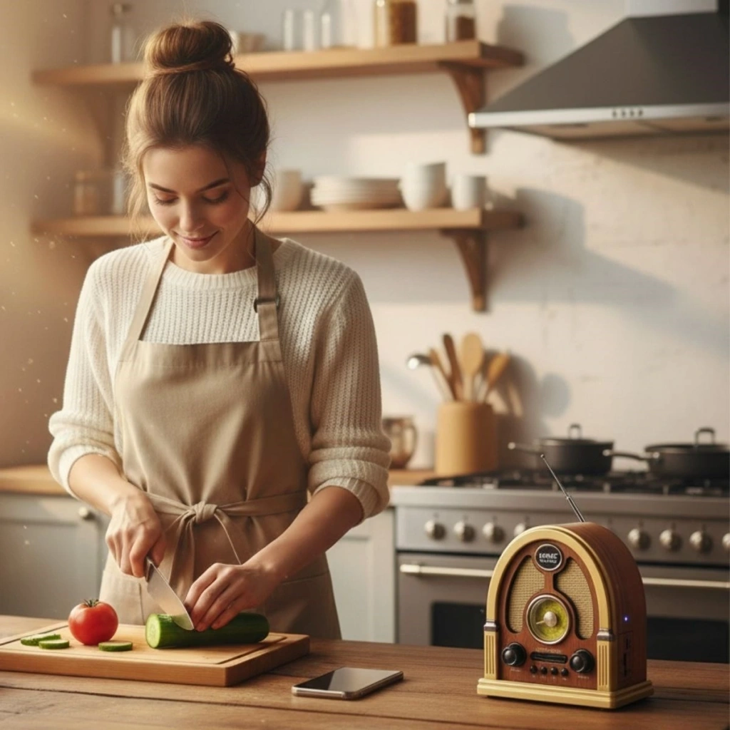 ✔️ Kubbe Model Retro Tasarım: Ahşap detayları ve klasik formuyla bulunduğu ortama nostaljik bir hava katar. ✔️ Bluetooth Bağlantısı: Telefon, tablet veya bilgisayarınızla kolayca eşleştirerek kablosuz müzik keyfi yaşayın. ✔️ FM/AM Radyo Desteği: Güncel haberleri takip edin, sevdiğiniz radyo istasyonlarını net ve güçlü ses kalitesiyle dinleyin. ✔️ Şarjlı ve Taşınabilir: Dahili bataryası sayesinde priz bağımlılığı olmadan istediğiniz yerde kullanabilirsiniz. ✔️ Orta Boy – Güçlü Performans: Kompakt boyutlarına rağmen tatmin edici hoparlör gücüyle net, temiz ve dengeli ses deneyimi sunar.