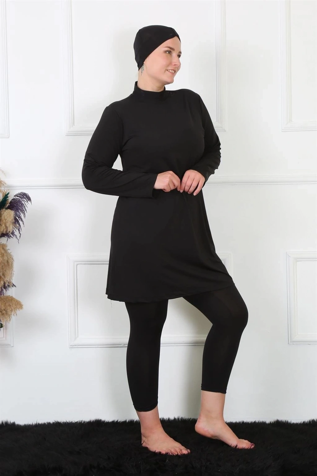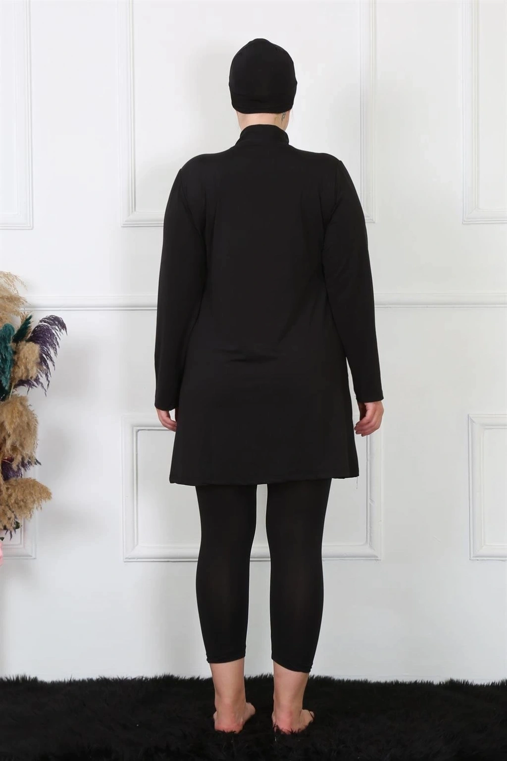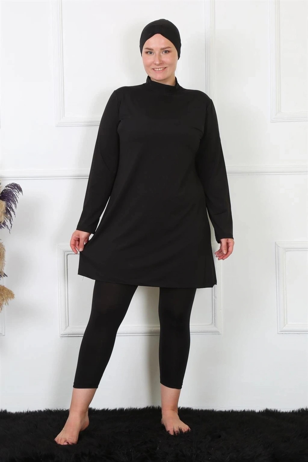 Çamaşır Kenti markasının tam kapalı büyük beden siyah mayo modeli, plajda tarzını korumak isteyen tesettürlü kadınlar için ideal bir seçenektir.
